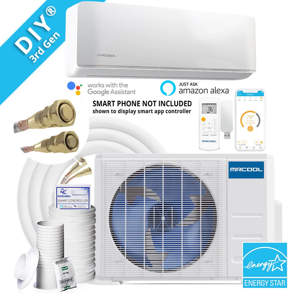 Introducing the MRCOOL E Star DIY 3rd Gen 12k BTU 22 SEER Ductless Mini-Split Heat Pump. These are ductless mini-split heat pumps with enhanced WIFI engineered to make setup not only quick and easy, but the MRCOOL DIY E Star Series is flexible enough to be installed virtually anywhere without requiring specialized tools or expensive equipment. The 12,000 BTU unit is 22 SEER and designed to heat and cool up to 500 square feet both efficiently and effectively. Our SmartHVAC app is compatible with Amazon Alexa and Google assistant. You can also control your DIY anywhere with your Apple or Android smart device with an Internet connection. Doing it yourself has never been easier with the new MRCOOL E Star DIY. This unit is shipped in two boxes.